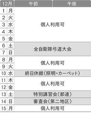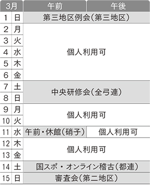 明治神宮武道場至誠館使用規定並びに(公財)全日本弓道連盟との申し合わせに則り、