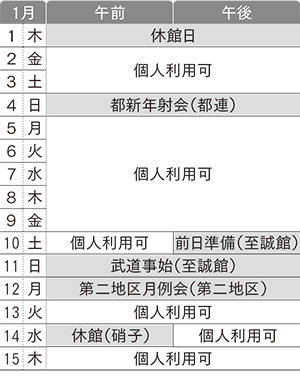 | 申込み方法 | 前日正午迄に中央道場事務室へ予約のこと |