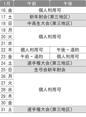 大会行事開催日以外に限り下記により個人使用することが出来ます。